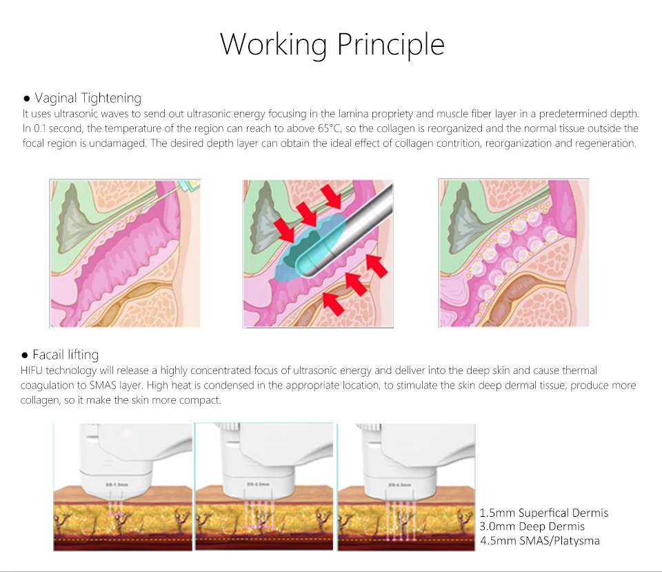2. Precision: The HIFU machine delivers precise ultrasound waves to the targeted areas, ensuring optimal results.