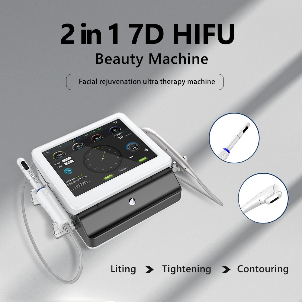The effect of 7d HIFU is to lift and firm the skin, improve the facial contour, eliminate wrinkles, whiten, and shape the body. The principle is to use the machine probe to emit high-energy focused ultrasound, instantly penetrate the skin, act on the epidermis, dermis, fat layer, fascia layer, stimulate the skin collagen contraction and regeneration, so as to achieve the effect of layering and anti-aging.