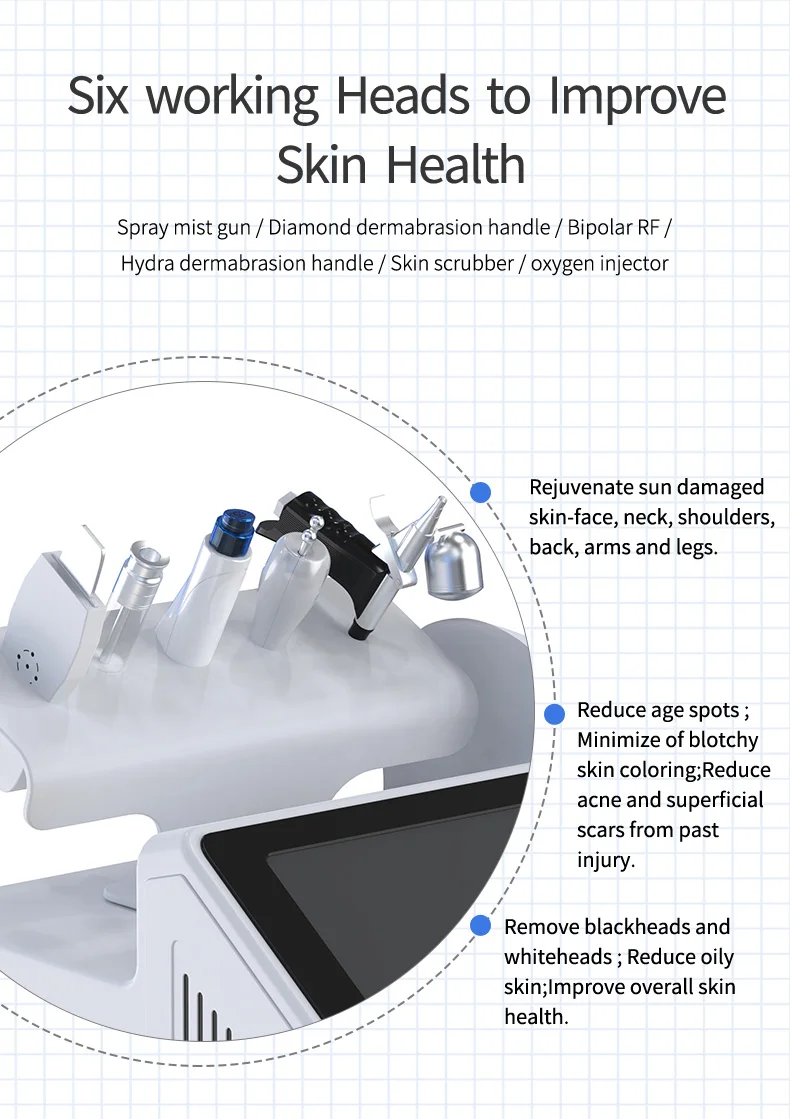 Enhance your skincare routine with our Professional 6 in 1 LED Mask Therapy Hydra Facial Dermabrasion Beauty Machine. This innovative device offers a range of powerful treatments such as microdermabrasion, blackhead removal, and LED therapy for a rejuvenating experience. Achieve a fresh, lifted complexion with our cutting-edge beauty bio face lift technology. Upgrade to a new level of self-care with our multifunctional device.
